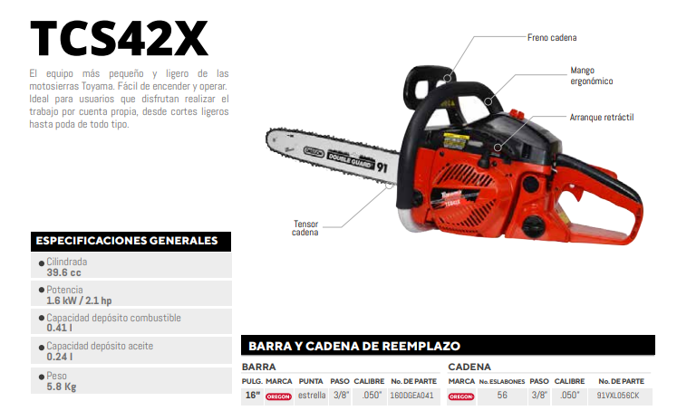 TCS42X / 16″ / 39.6cc / 2.1HP / Ideal para poda de ramas o en alturas