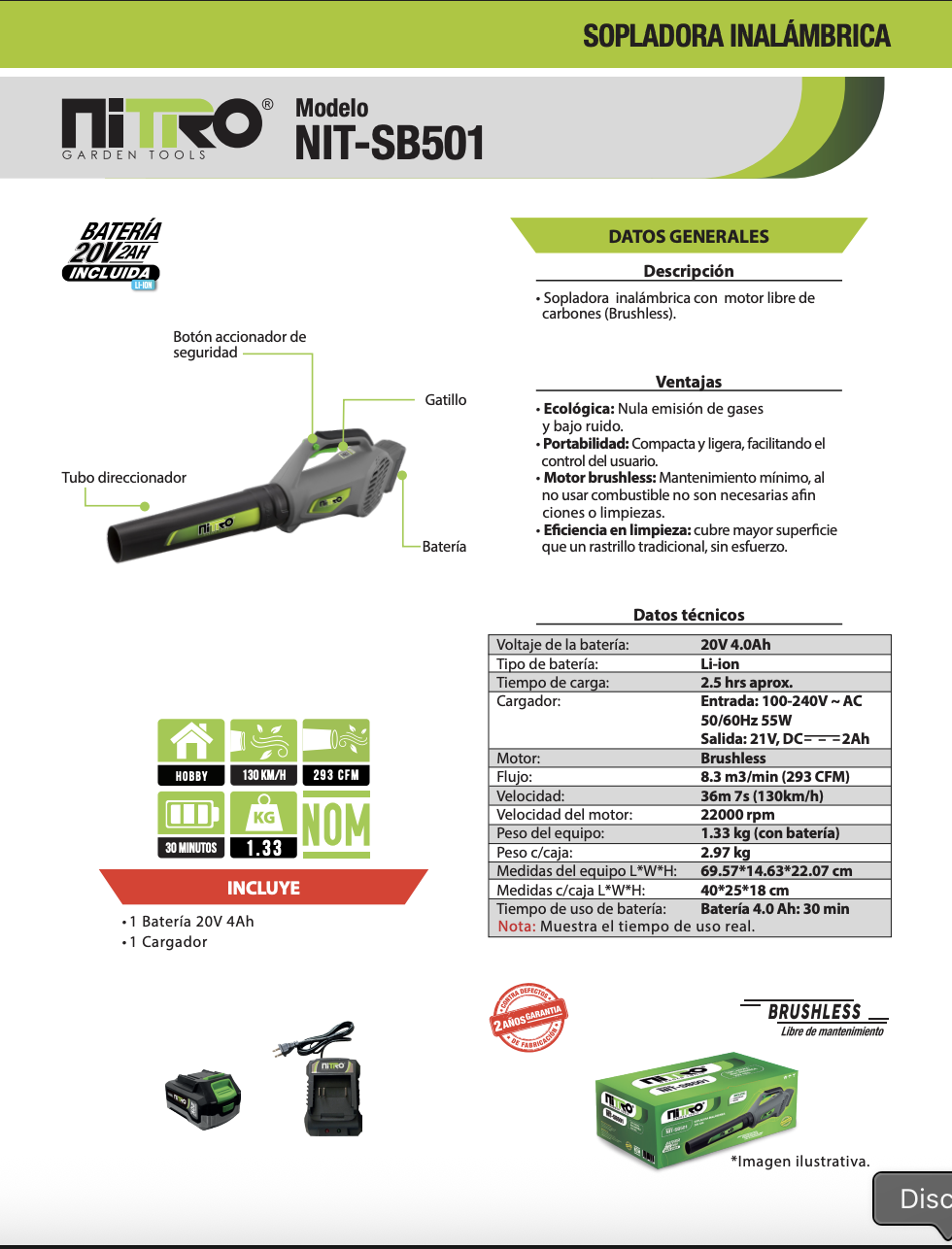 SOPLADORA INALÁMBRICA NIT-SB501 480W BRUSHLESS 20V