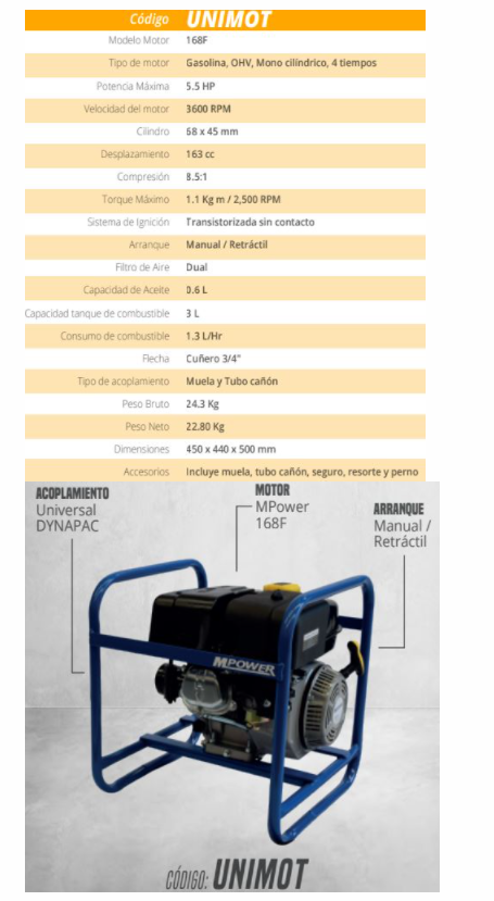 5.5HP / MPOWER / 3600rpm / 163cc / Sin chicote